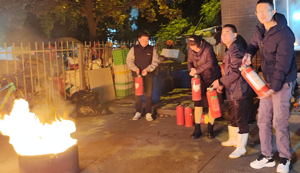 为让员工了解安全防火的重要性,正确掌握火灾报告方式,增强在紧急火灾中自救、逃生和疏散能力,正确掌握使用消防设施,提升火情初级阶段有效处置能力,加强住宿员工对消防知识的了解和认识,增强消防意识,提升夜间突发事件应变处理能力。 我司于2024 年 11 月 26日19时组织全体有夜班人员及住宿员人,设备部人员,管理部人员,安保等人员在宿舍区进行夜间消防应急演练。 本次演练在公司领导高度重视下和各部门的积极参与下,演练达到了预期目的,火灾应急预案有效,同时君发现也存在一些不足,后续将持续改进。